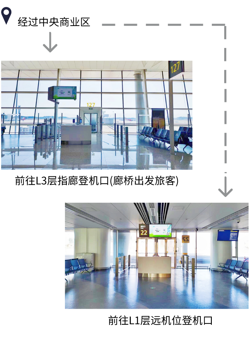 廊桥到达旅客L2层到达层/远机位到达旅客L1层到达。