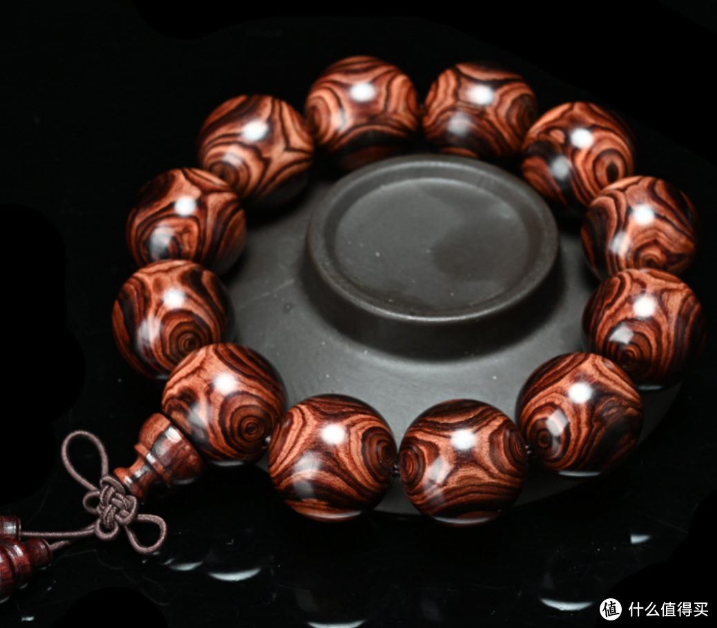 小叶紫檀:其实这个如果不是特别讲究,其实不算贵,几百是能买到的,几十其实也能。难度就在于,小叶紫檀极品跟垃圾差距太大,新手很难分辨。举个例子,网上有卖小叶散珠的,就是用那种速生料的小料,批量加工的珠子,几十一斤,是真货,就是品质不行,颜色纹路不配套,珠子也不一定圆,这种就算是你给它穿成一串,真的戴着也觉得很难受。其实这个就跟买车,是买豪华车入门款,还是低档车的顶配一个道理,但是车是有参数的,木头要靠经验分辨,所以这也是新手很容易被蒙的一个原因。小叶而且作假比较严重,这里说的是带高档花纹的,比如大叶紫檀,血檀都是可以直接冒充小叶紫檀的,火焰纹,牛毛纹,金星都做的出来,这类分辨文章很多,这里就不细说了。总之,小叶真想玩,可以,但别建议一上来就冲极品纹路,就算买到真的,十有八九也是多花很多钱,千把块钱的东西,还是建议先了解一下再说。