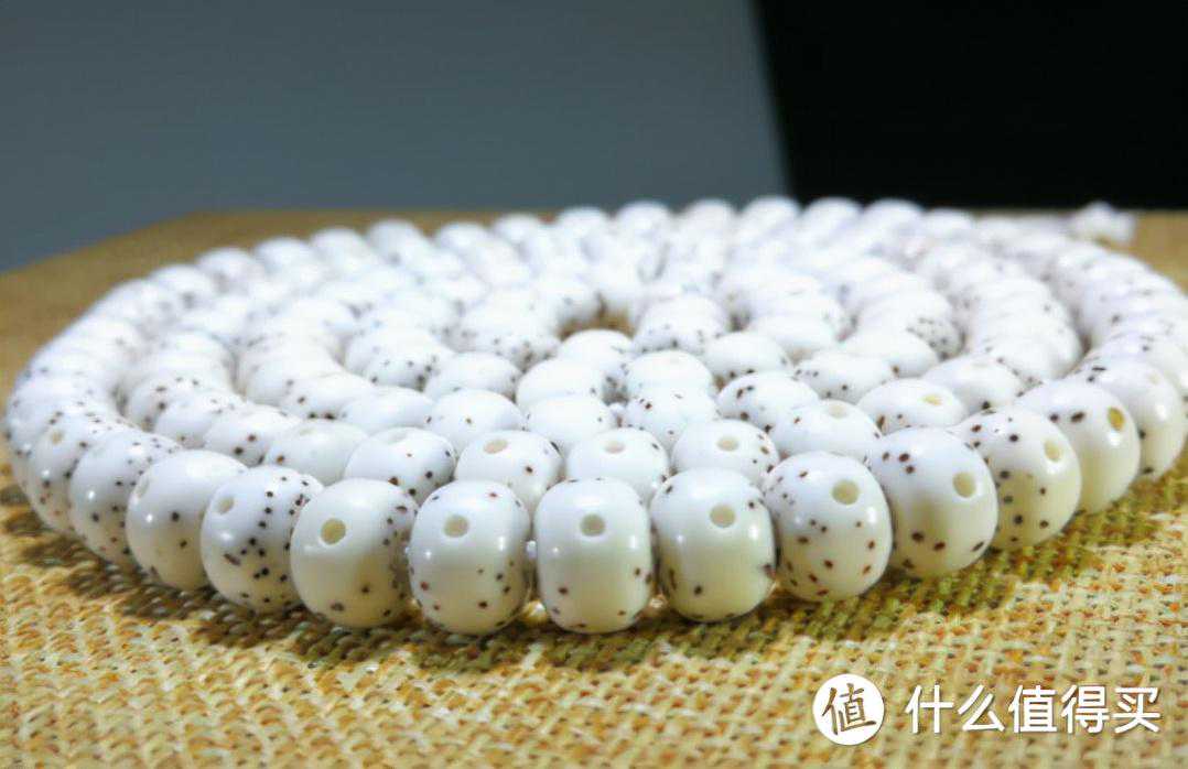 然后就是加工工艺导致成品的区别,比如孔径大小,器型是否统一(比如圆珠是否够圆),是否有加工瑕疵,以及方向是否顺。方向顺这个一般很少有人注意,其实言语也比较难描述,具体看下图吧,珠子少其实不大看的出来,主要适用于108以上的珠子,因为很长,稍微不顺容易看出来。这儿有个很简单的分辨办法,就是手拿一个链子,让珠子垂直,这时候顺不顺就很容易看,好的链子像一条线一样笔直,加工工艺不太行的会七扭八歪。