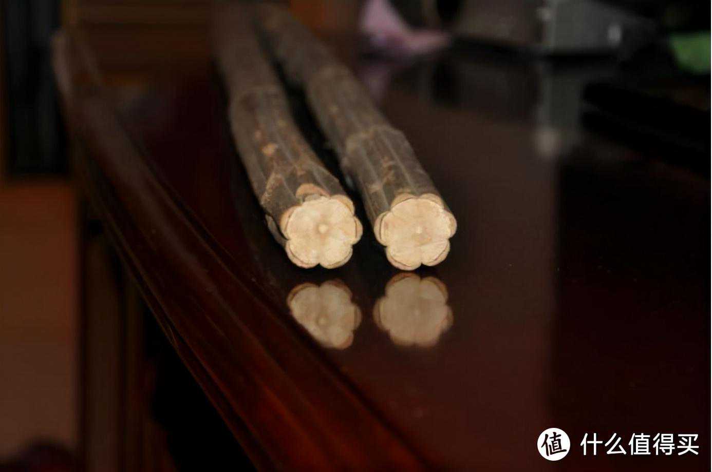 用来加工珠子的紫檀饼料,一般中间都有空洞,最外层的是白皮