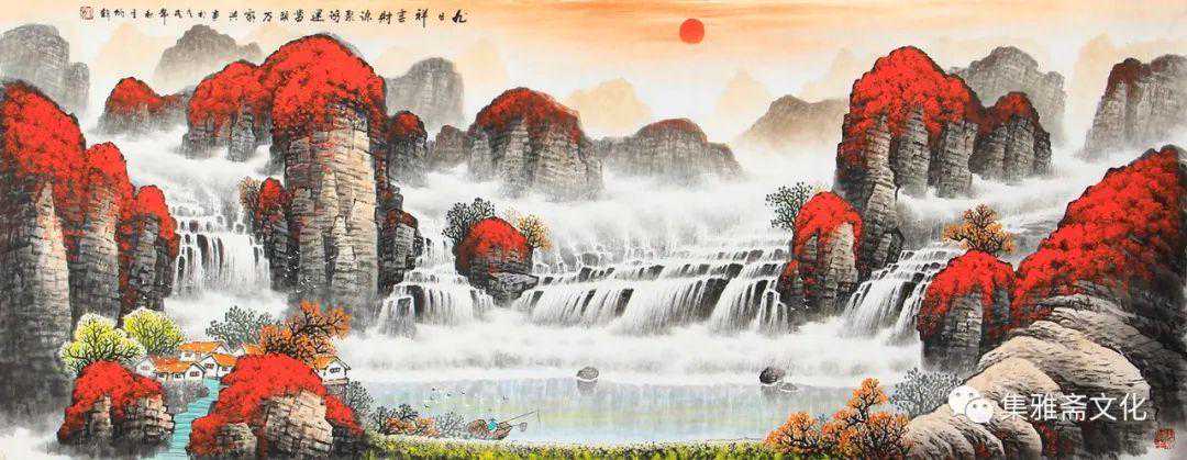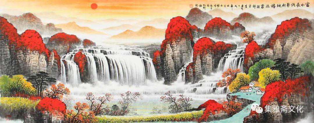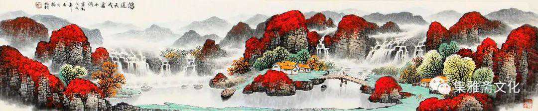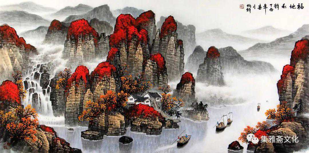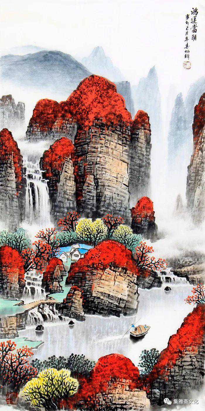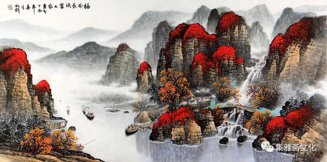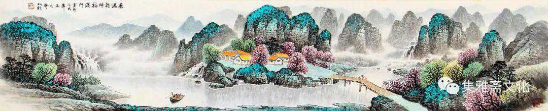 杨炳钧创作的山水画,色彩鲜丽而不媚,意境深远而不晦,风格清秀而不俗,在传统的基础上融入了个性化的审美情趣,有一种扑面而来的书卷气,在画坛独树一帜。杨炳钧的山水画恰似不自觉地走了“进去”,不管是名山大川,还是小桥流水、飞泉溅瀑、村舍古寺,都是令人向往的世外桃源,自然而然地有轻松闲适之感,使得观赏者几欲走近。