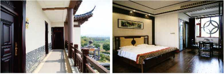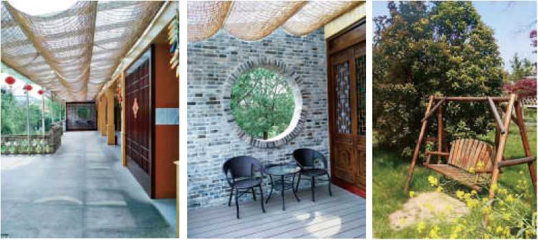 民宿由东区的森林温泉小栈和西区的古居园林庭院两部分组成,东部的温泉小栈是以温泉为主体的森林木屋建筑风格,在这天然的森林氧吧里泡个温泉,身心都会得到放松。西区的古典园林庭院,处处透着江南韵味,曲折的回廊加以老物件石料盆景精心布置,赏心悦目。