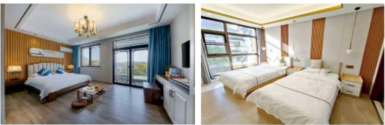 知青山庄现有星级标准度假客房64间,每间客房外都有独立的户外私有空间,让每一位入住此地的宾客都能有舒适体验。