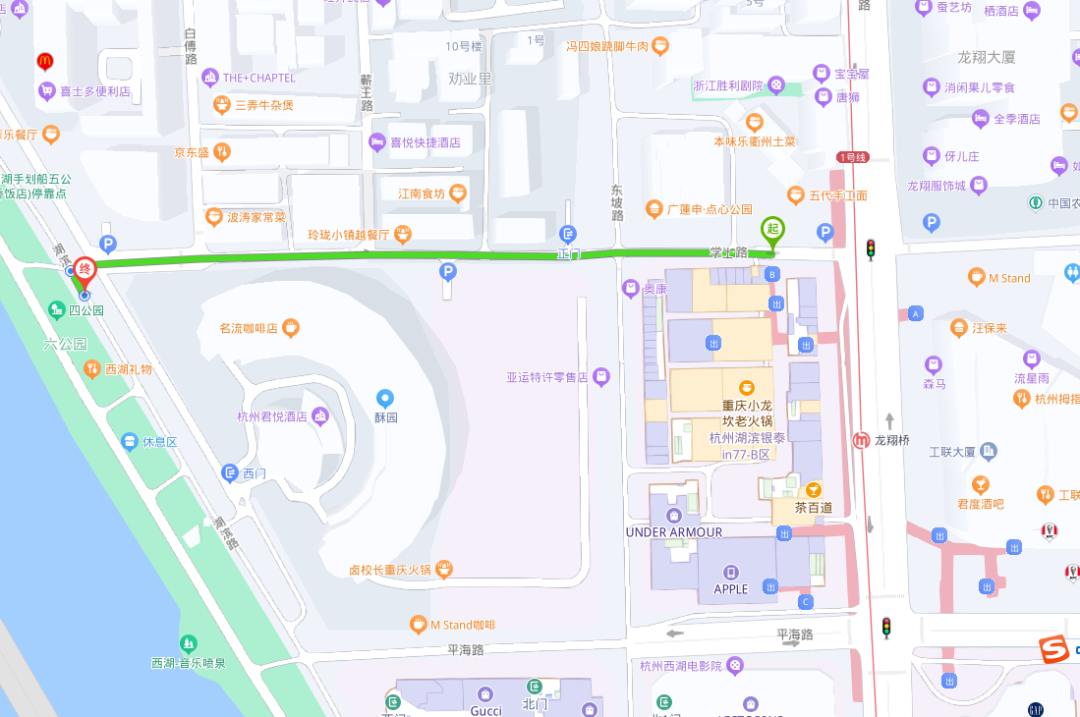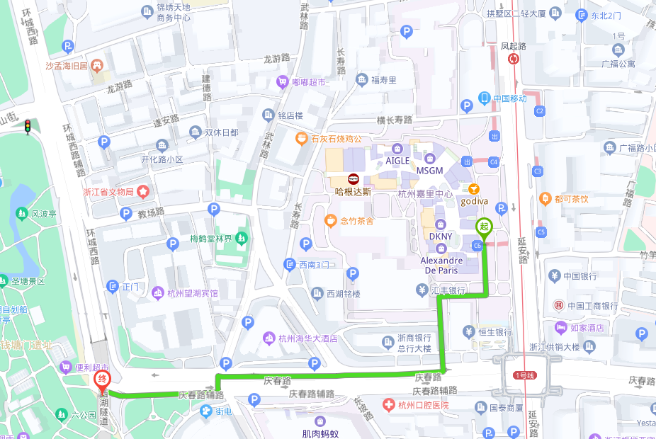 步行或骑行可达西湖景区