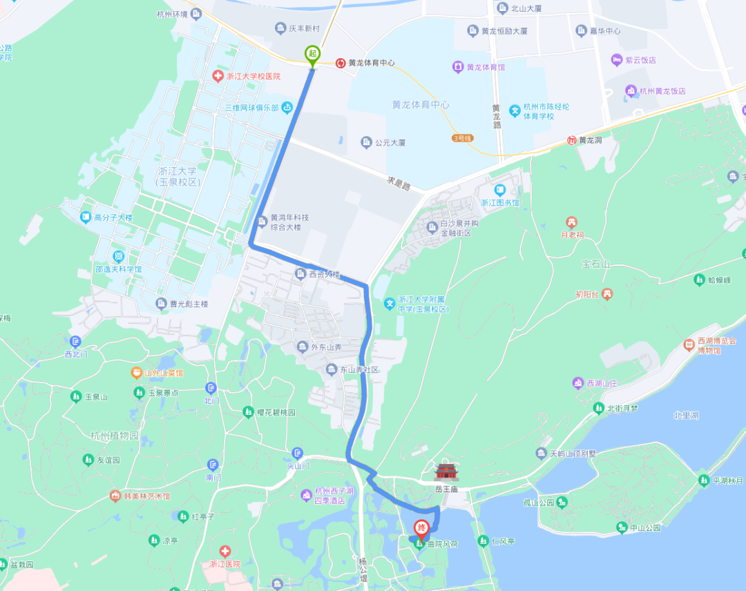 途经玉古路、浙大路、曙光路骑行约2.9公里