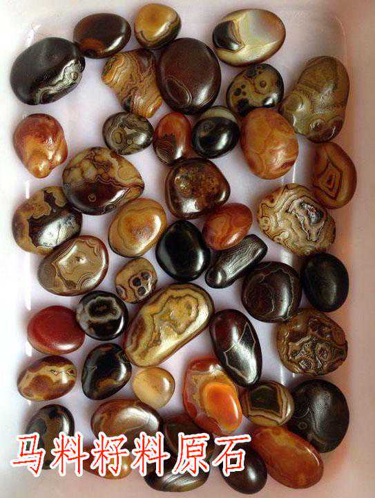 简称马料玛瑙,此非洲岛屿令人向往。马料分为两支,一马料籽料,水冲而成,纹理变化多样,质地甚佳,多做把玩石,也有雕刻者,颇受广大奇石爱好者喜爱。二马料山料,质地上乘,做雕刻料石用。有些山料因其质地可达玉髓,被命名海洋玉髓。海洋玉髓现在是画面类观赏石重要的一支,画面和背景颜色反差大,犹如一幅幅水墨丹青。