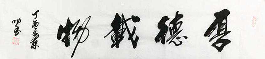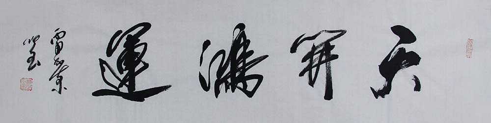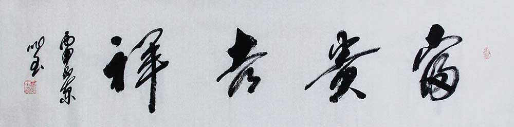 高作玉老师这幅书法作品《富贵吉祥》,书写凝练。灰色底,黑色字,字与字之间的距离显得恰到好处,与题款小字的呼应极为协调。线条的粗细富于变化,落墨干净紧凑,笔画柔韧有力,凸显字的风骨。真正的腕力,造就了如此无懈可击的书法,这也是他书写风格的具体体现。凝练中体现力量,古朴中凸显灵动,成为这幅书法的一大特点。书法寓意非常美好。推荐收藏。