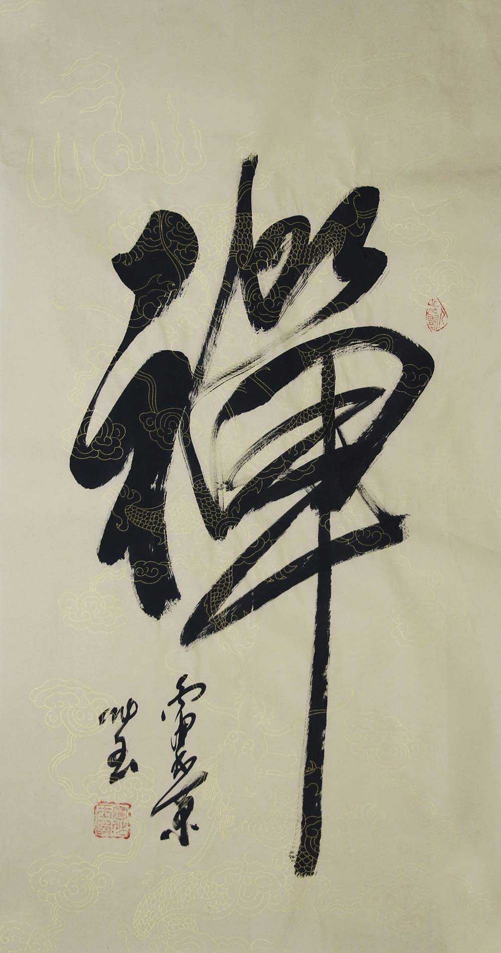 高作玉老师这幅书法作品《禅》,一个大字立在天地间。长条幅,在以龙和祥云为背景的纸面上书写,黑色墨迹上有龙和云的足迹,犹如锦上添花,蕴含着美的气势。字体线条浑厚、匀净齐整,通畅而又古拙、虚灵,笔调轻快流畅,首尾连贯,呈现出一股苍劲流畅之美。书法家表现出对禅的崇拜,是对人生的思索,给观者带来极美的艺术享受。推荐收藏。