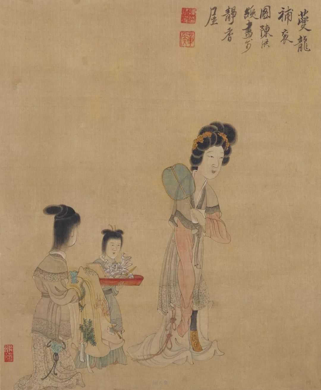 四十六岁,陈洪绶在扬州逗留期间,娶了胡净鬘(mán)为侍妾,胡净鬘也工诗画,擅花鸟虫草,笔致工丽,后两人同回故乡,曾合作花卉册页传世,净鬘还指导陈洪绶长女陈道蕴学画,“讲究六法”。