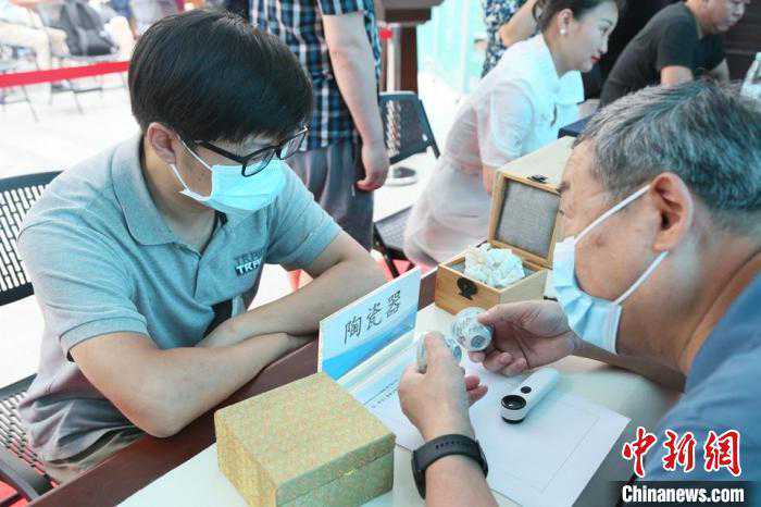 中新网海口(记者符宇群)6月10日“文化和自然遗产日”,由国家文物进出境审核海南管理处、海南省博物馆、海南省文博协会主办的“琼州鉴宝——民间收藏文物公益鉴定活动”在海南省博物馆举行,现场排队等候专家为自家“宝物”鉴宝的民众络绎不绝。