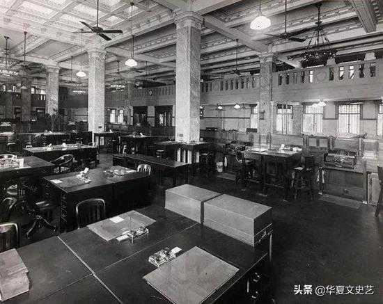 1932年3月30日,营业大厅里储蓄处的办公环境,存款及储蓄记账均为机器