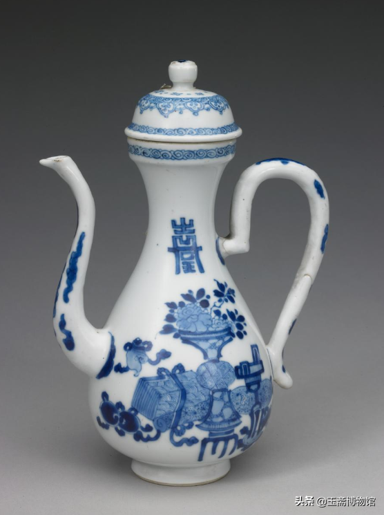 青花人物寿字博古图执壶北京故宫博物院藏