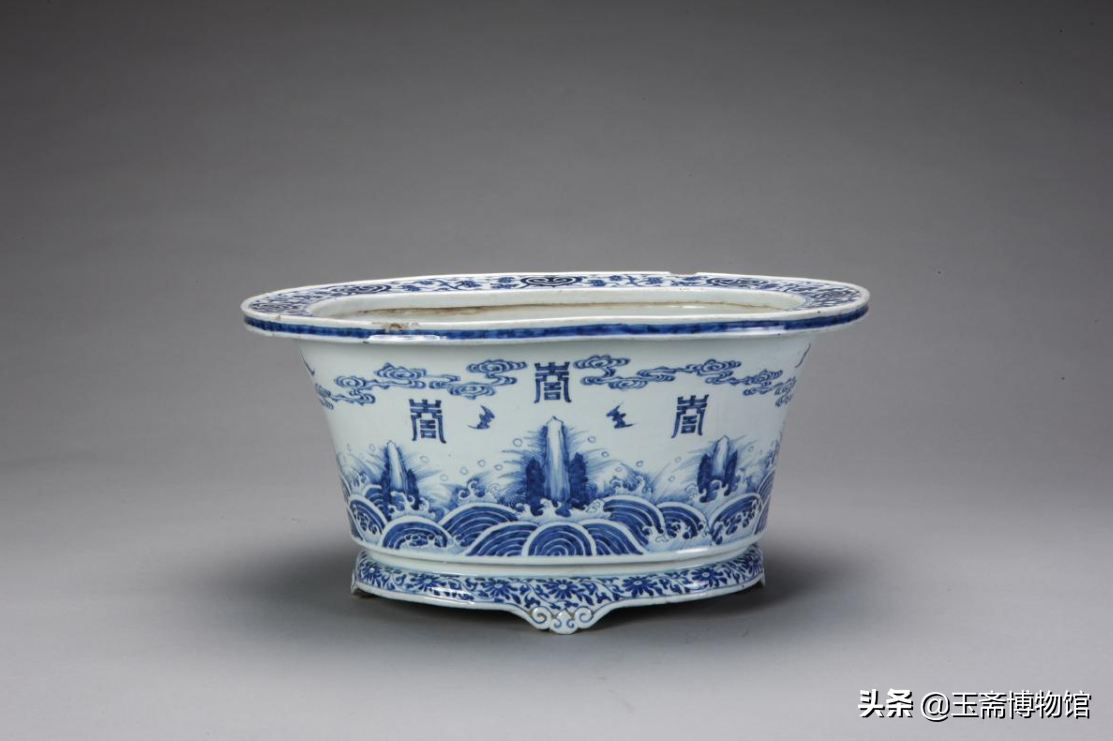 青花寿海图椭圆花盆北京故宫博物院藏