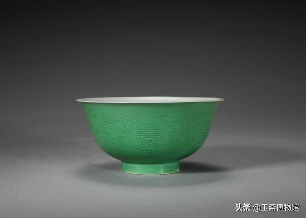 绿釉刻花灵寿纹碗北京故宫博物院藏