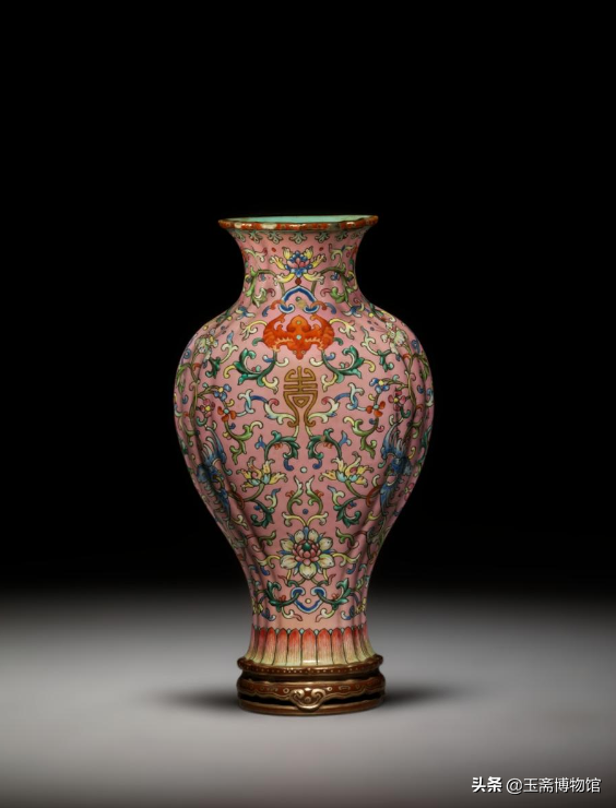粉地粉彩缠枝莲福寿纹双耳瓜棱壁瓶北京故宫博物院藏