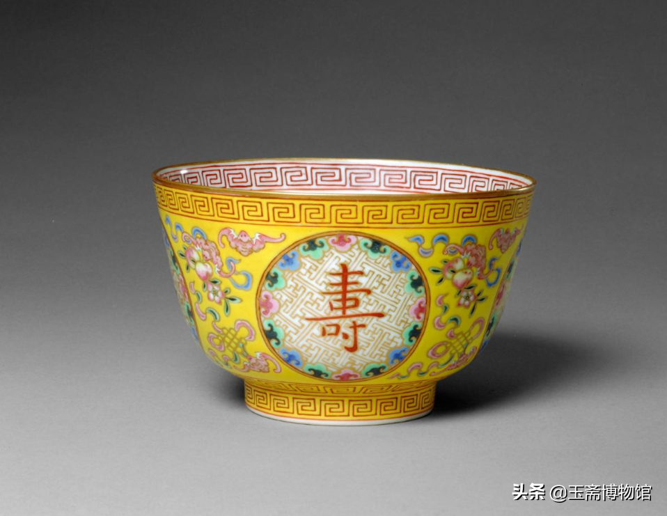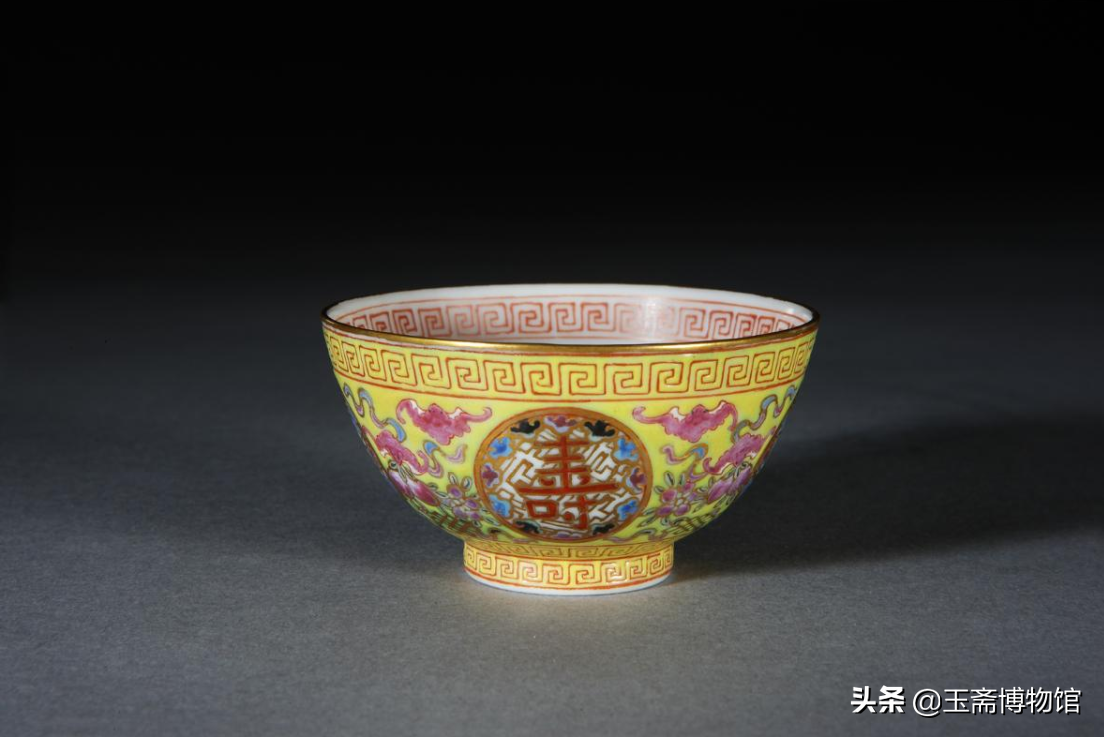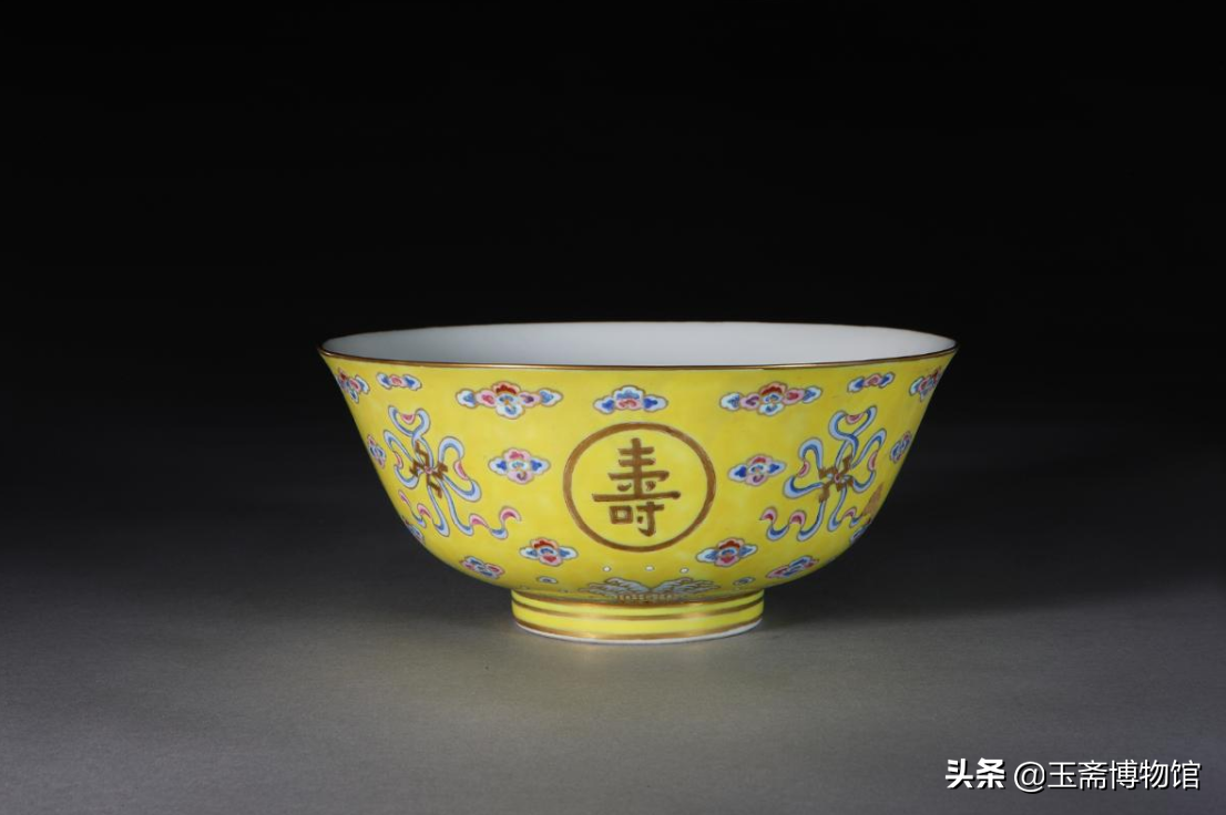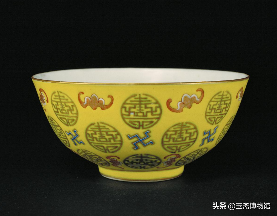 黄地粉彩描金卍蝠纹团“寿”字碗北京故宫博物院藏