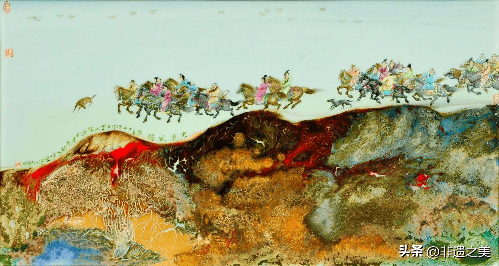 新时代粉彩、它在绘画表现材质上具有“跨界性”“综合性”特点;在工艺技巧上讲究“材质与绘画”兼备;在艺术特征上追求“工与艺”的结合;在作品格调上“主张传统文化意蕴与时代感相融合”深入思考艺术创作的方向,探索艺术创作在工艺表达的各种可能性,呈现出具有时代语言与时代精神的粉彩艺术作品。