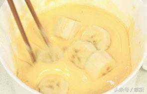 5香蕉裹上面粉糊。