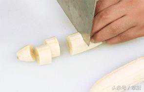 1香蕉去皮,果肉切小段,装盘备用。