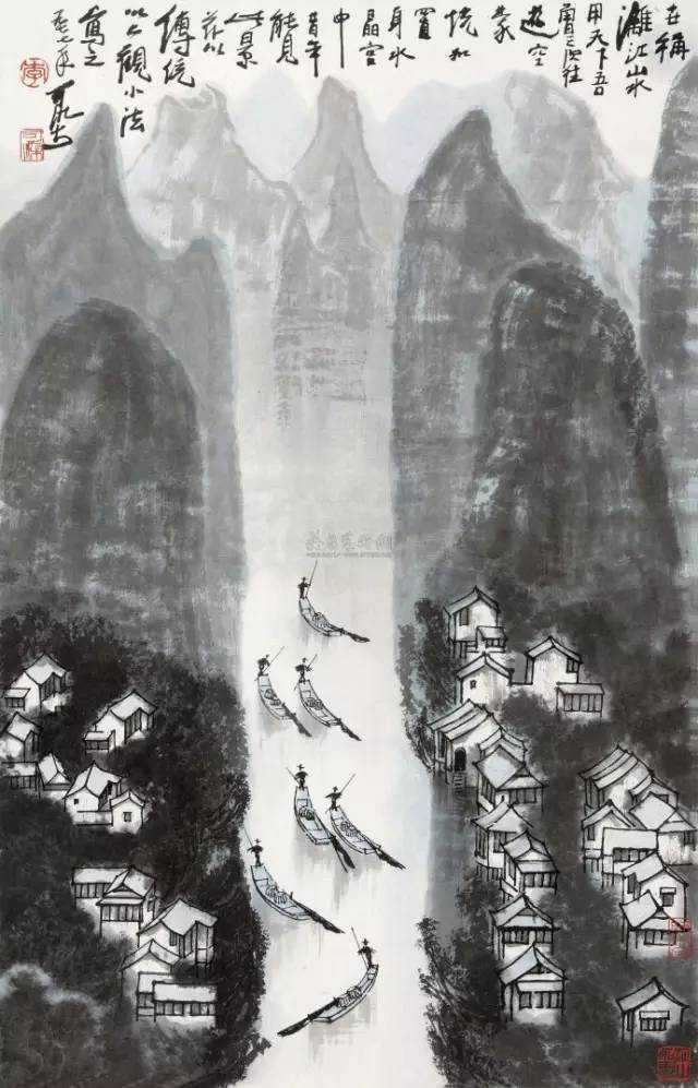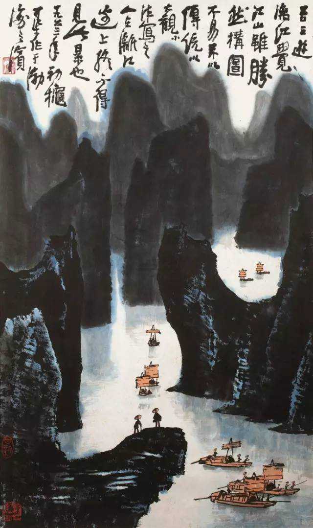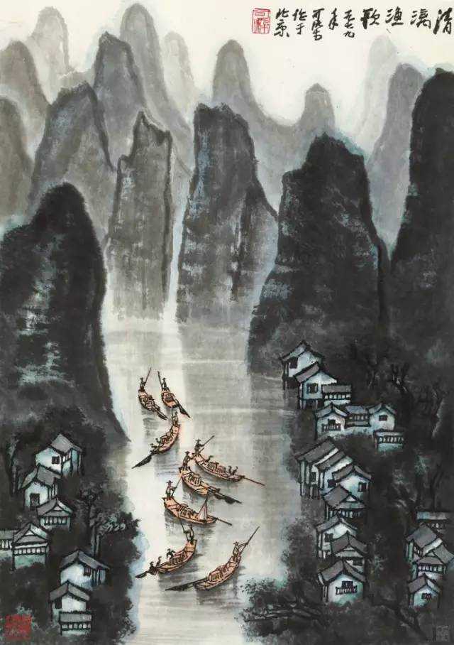 李可染1973年作《清漓帆影》