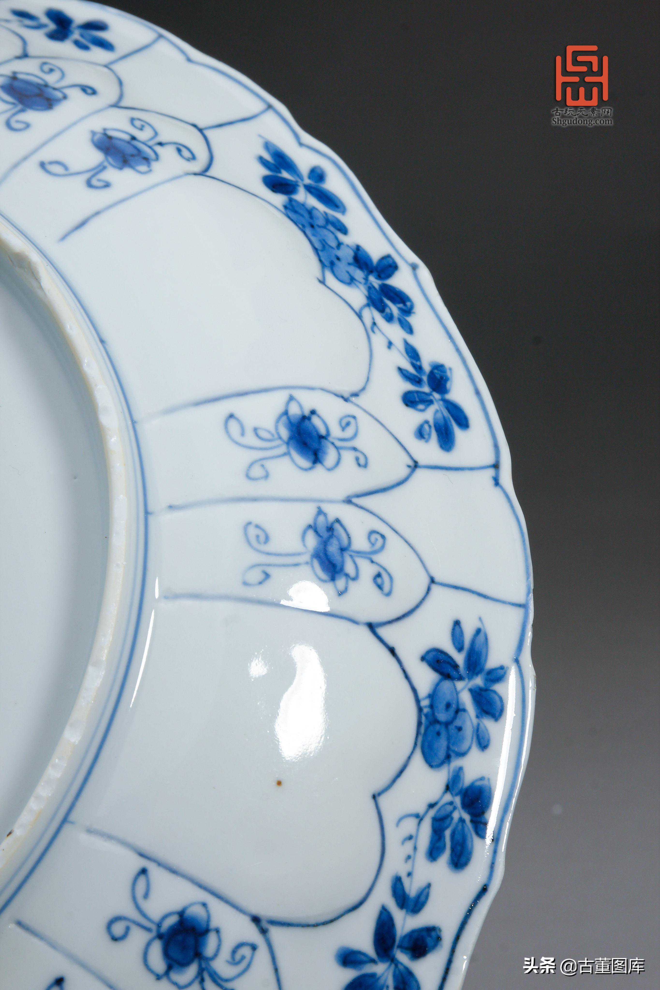 清康熙青花花卉纹莲瓣花口盘