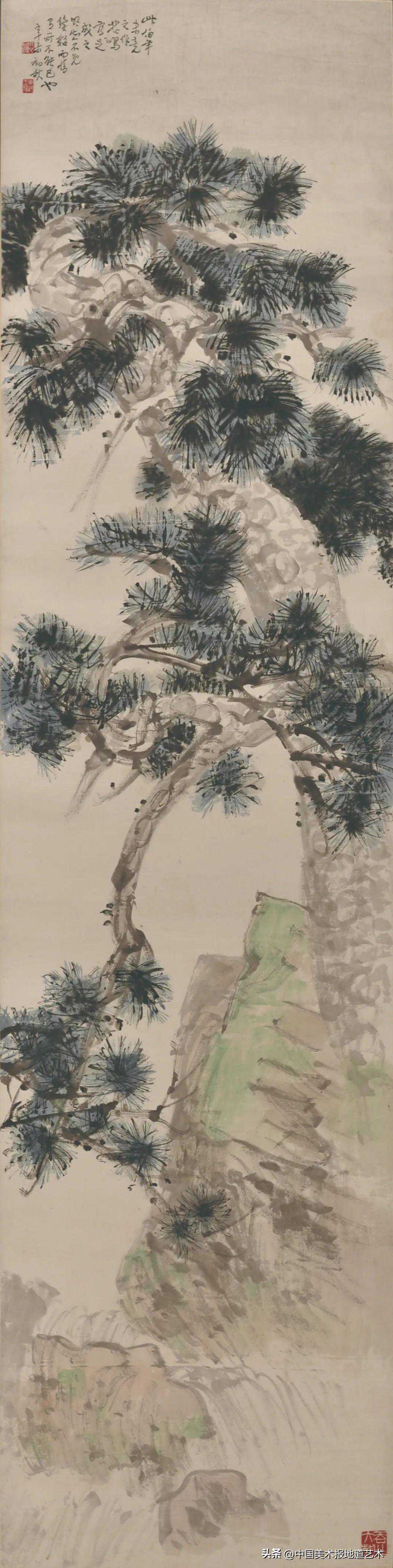 任伯年松石图纸本设色242cm×61cm年代不详徐悲鸿纪念馆藏