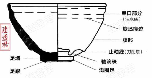 当茶水倾入茶盏时,“注水线”能够有效地阻止滚烫的茶水溢出,起到“回水”作用。因从侧面观察,“注水线”如一道束箍,故命名“束口”。