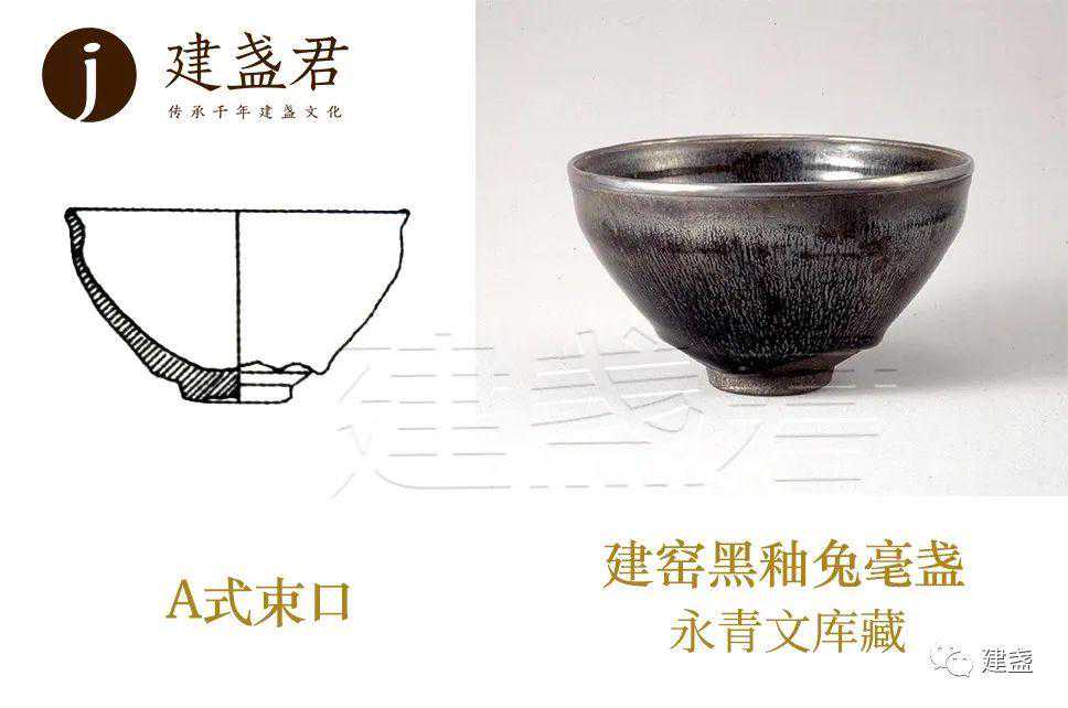 宋代建盏束口盏居多,A式束口盏,整体造型饱满刚健,富优美曲线变化,是建窑最具代表性的器型,以中型器(口径约11~15cm)居多。