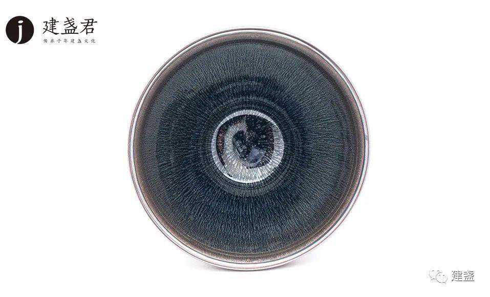 ▲陆金喜老师作品-曜变尊盏(晦翁),口径10.7cm,小型器物,盏内外均施黑釉,盏内斑核耀眼