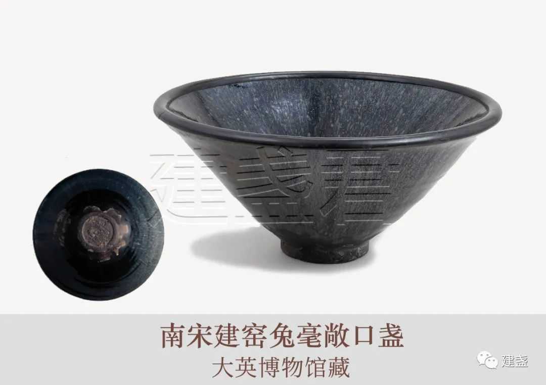 ▲福建博物院藏的建窑黑釉盏,B式束口盏标准器,口径10.8cm,小型器,窑址出土,灰黑胎、深圆腹,釉色黑润、口沿铁红色