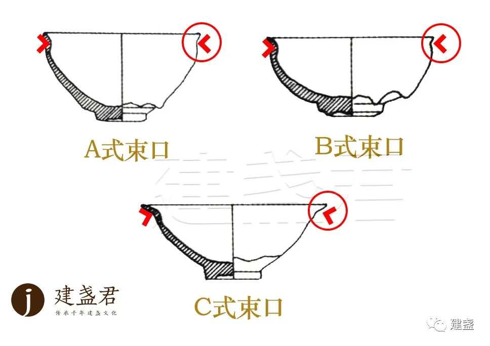 斗茶所用:建窑束口盏建窑束口盏,口沿曲折,外缘向内受挫,约束成一圈浅显的凹槽,内壁则形成一周凸圈。又分为A式、B式、C式束口型。