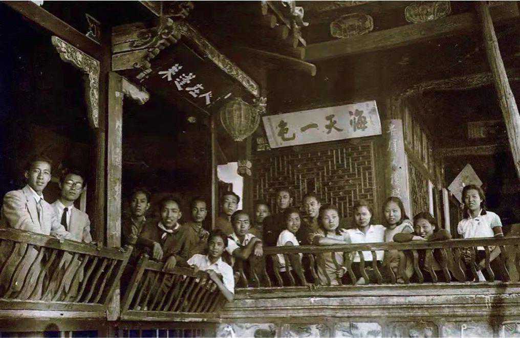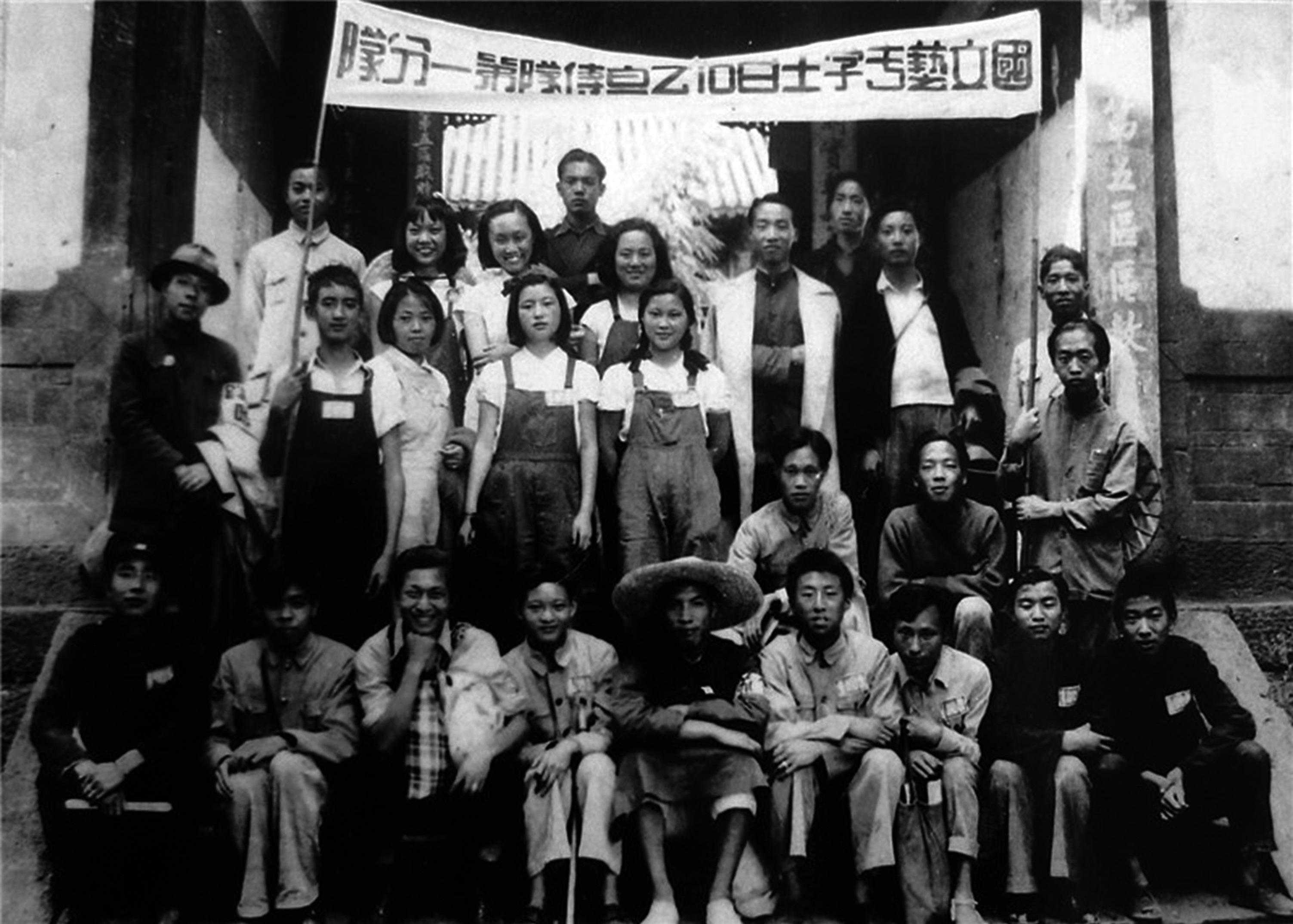 国立艺专学生在昆明昆华小学校舍前合影