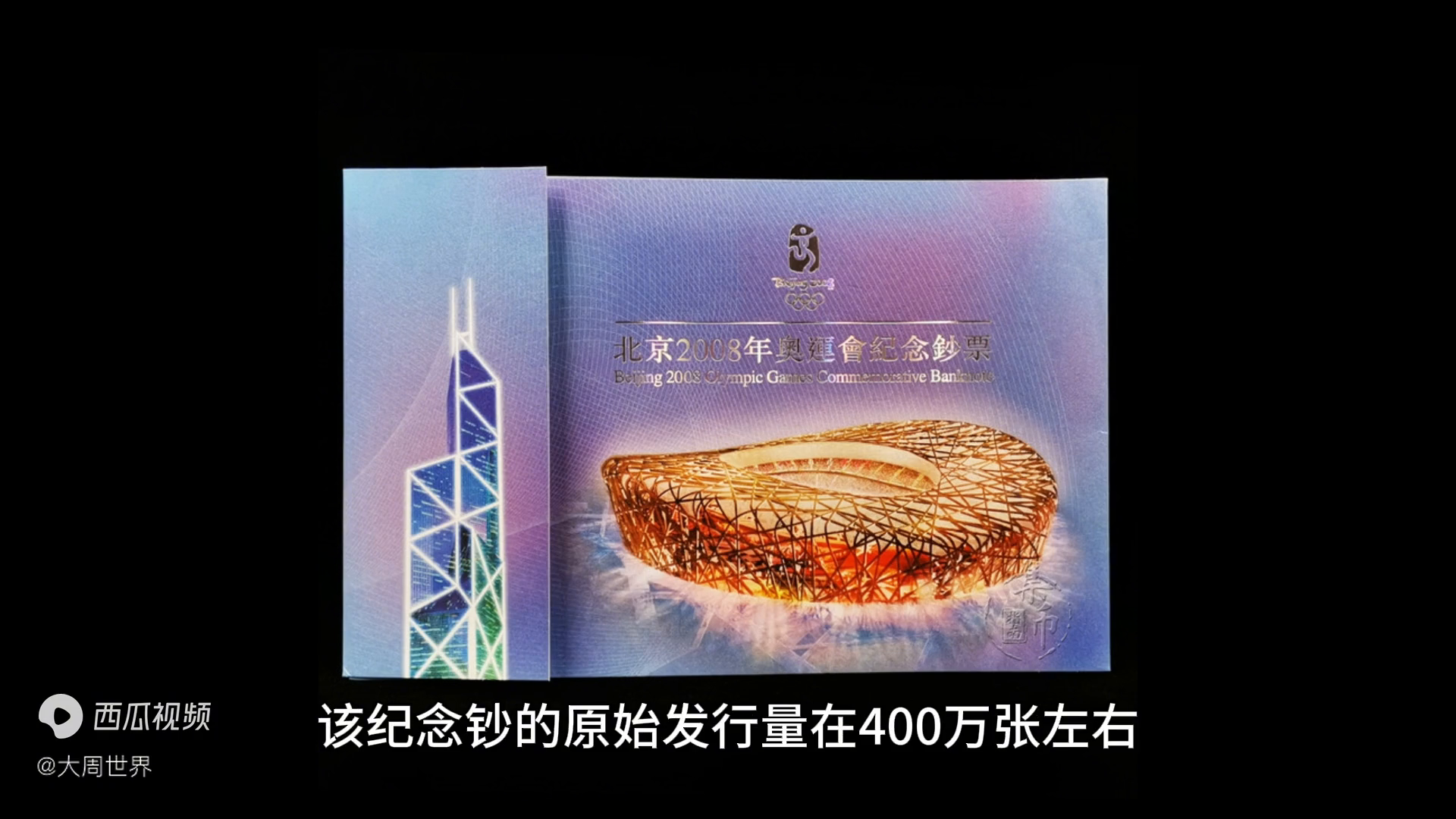 为了迎接和纪念北京奥运会,中国银行(香港)有限公司2008年7月11日宣布发行香港奥运纪念钞。中国银行(香港)作为香港发钞银行,特别发行港币20元面值北京奥运会纪念钞。该纪念钞的原始发行量在400万张左右,其中单钞306万,四联体发行6万张,另有三十五联体2万张。