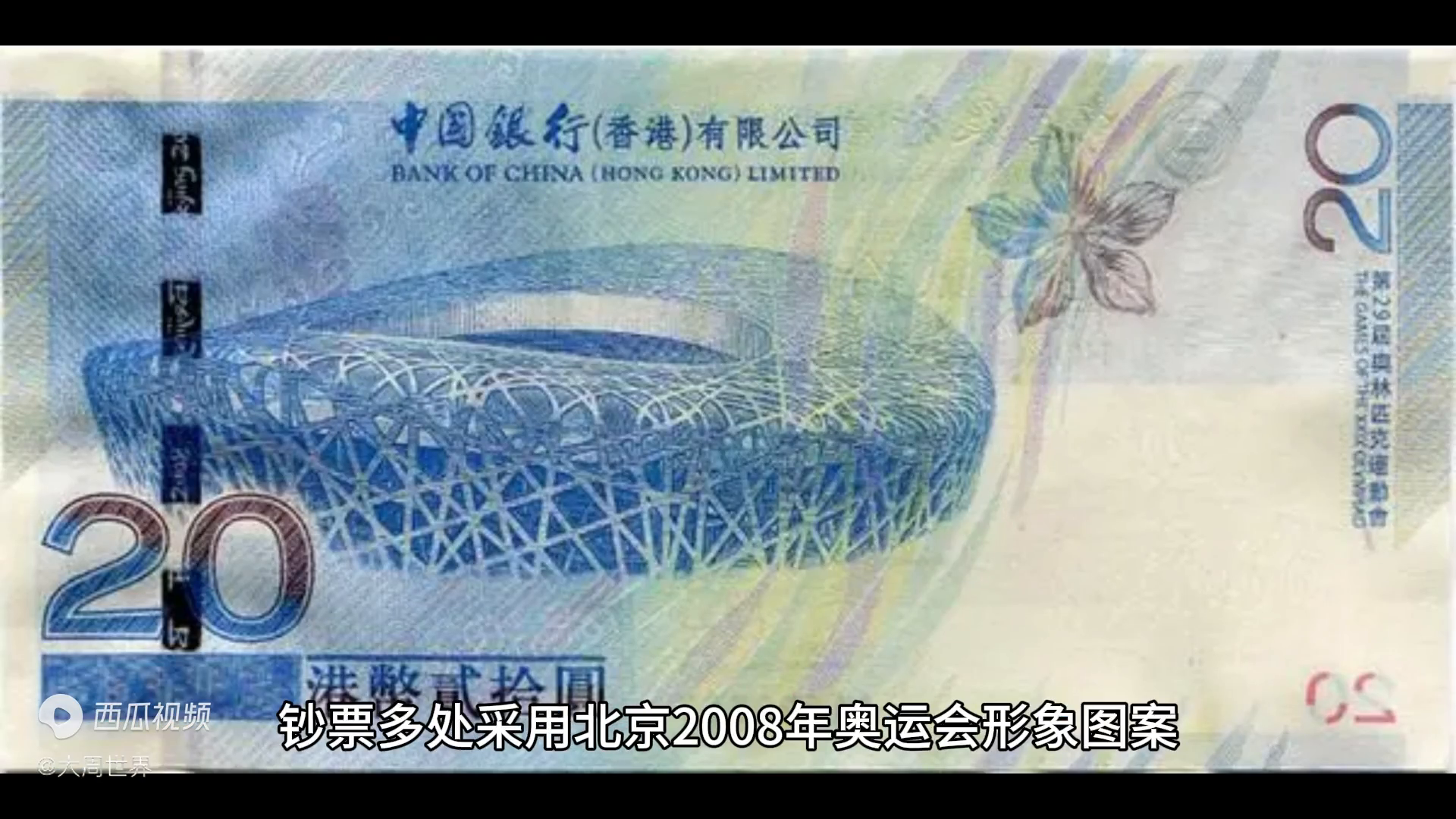 钞票多处采用北京2008年奥运会形象图案、文字及象征运动的多色图形,以刚与柔、动与静的表现手法,体现古今人类文明在时空上的融合。奥林匹克精神的传承与发展,反映香港市民期盼和支持北京奥运会的情怀。