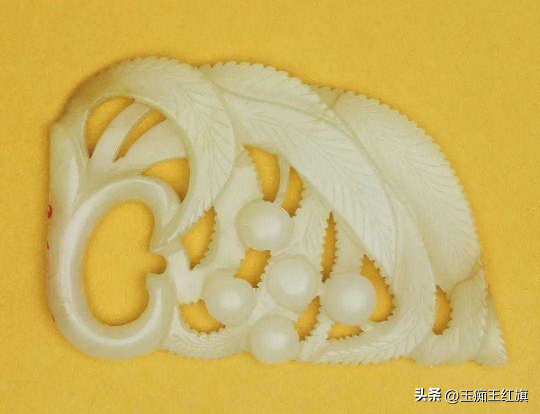 白玉折枝樱桃北宋~金北京故宫博物院长7.7cm,宽5.2cm厚0.7cm白玉环佩,镂空雕折枝樱桃纹,叶脉生动