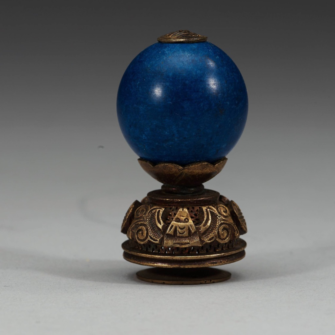 接着是五品官员顶珠用的是水晶,配的是黄铜底座。水晶相比于红蓝宝石自然不算名贵,不过据说把水晶选为顶珠也是颇有深意,皇帝要求这些官员心如水晶透亮,忠心可鉴。