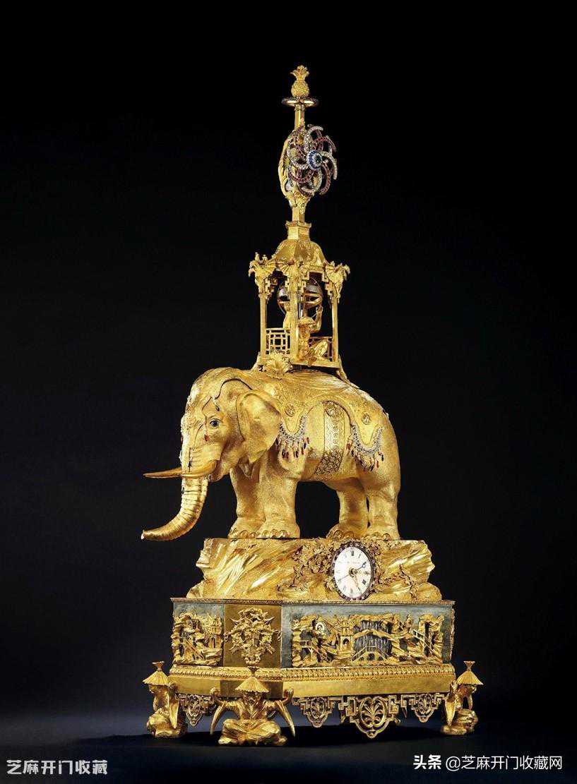 4:18世纪(英国乔治三世时期)(为乾隆宫廷特制)铜鎏金太平有象水法转花音乐自鸣钟,成交价RMB36,225,000