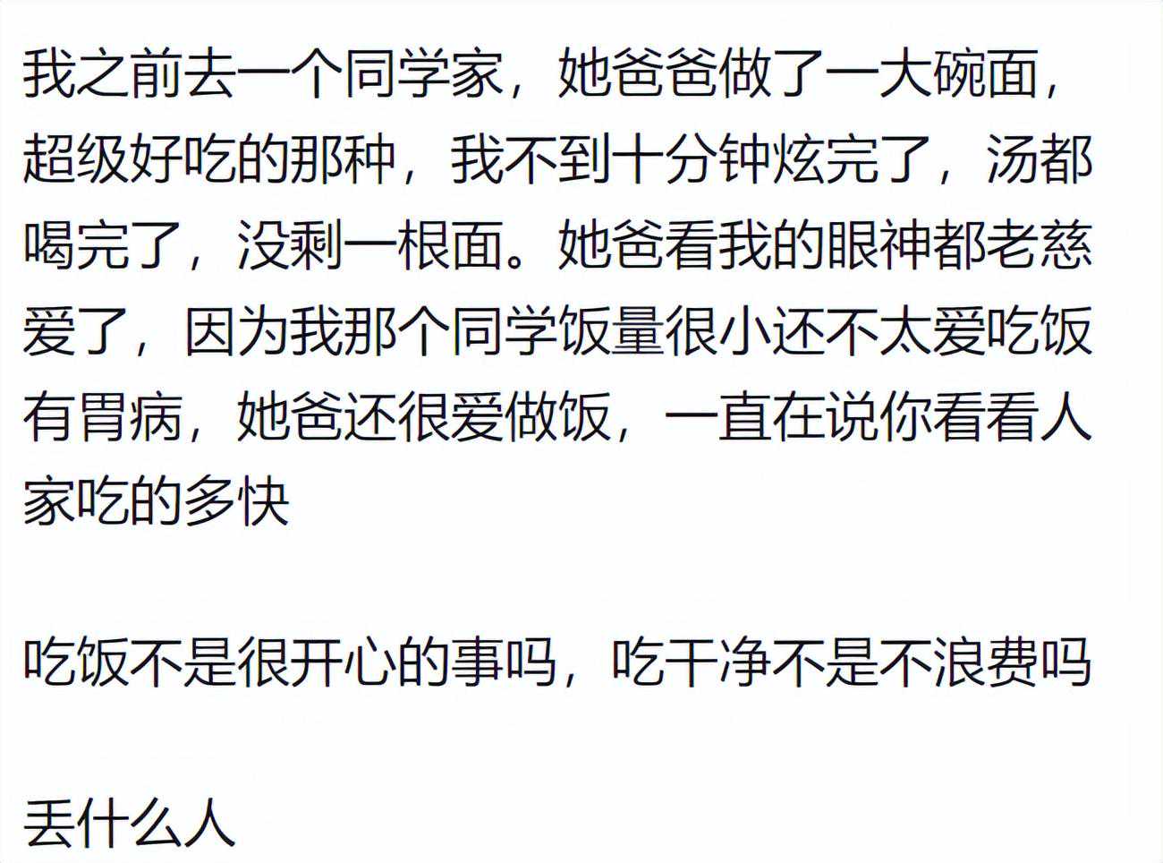 正常家庭吃饭吃得干净吃得香是会被夸奖的,不知道从谁开始变成了嘲讽