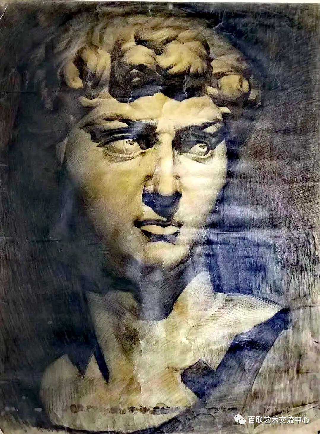 沈光成《大卫石膏雕塑》78×108cm1980年