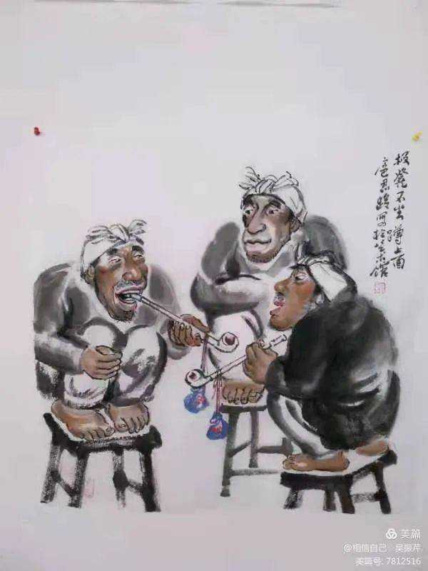 一个人物,了了数笔,就刻画得惟妙惟肖;一个眼神儿,一个动作,就能表达出丰富内容;稍作夸张,就使人忍俊不禁。其功夫造诣,着实十分了得。