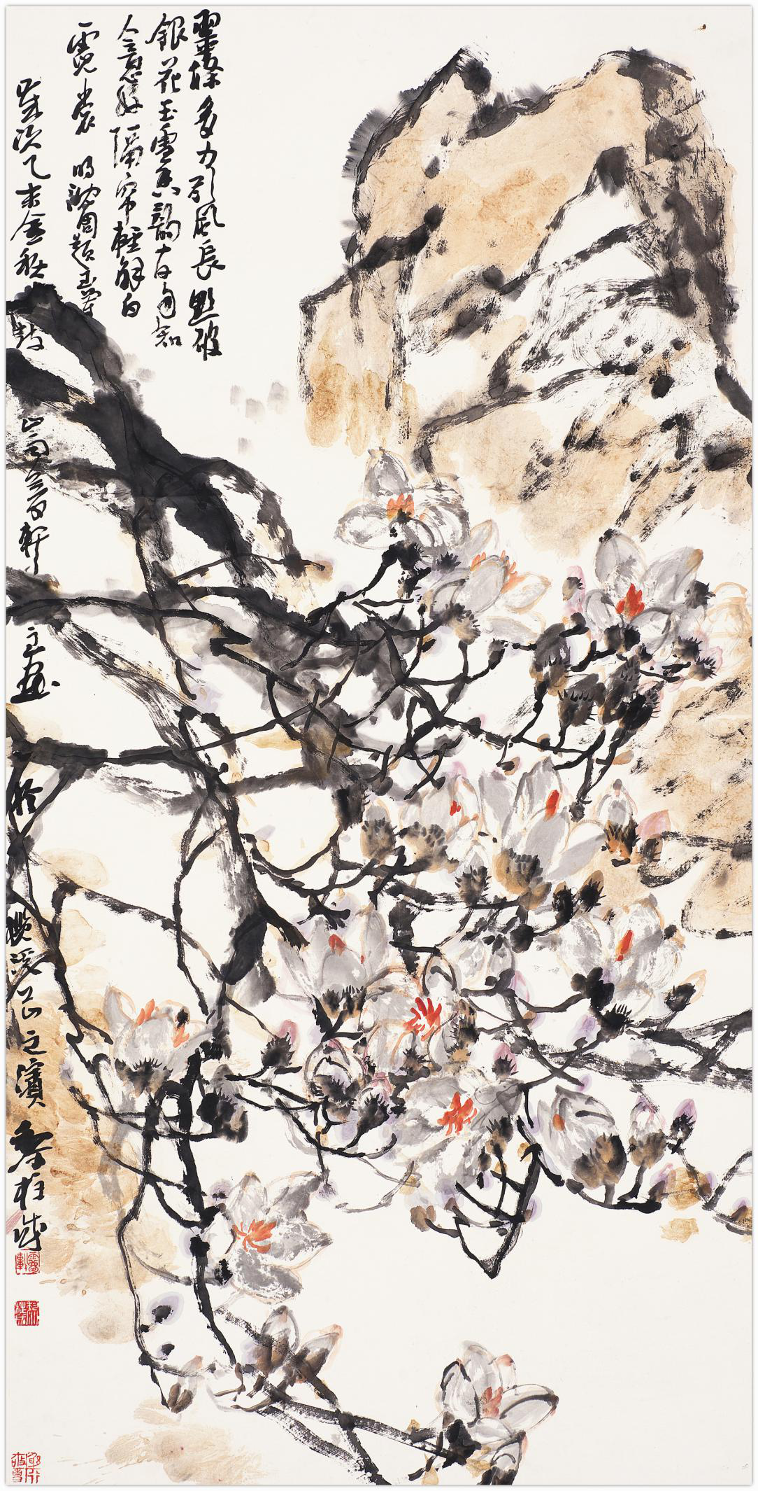 黎柱成的画具有浓烈的岭南特色,纵横均匀带来扑面而来的气息,尤其是他的传统程式和新题材的把握,处理的非常好,他的花鸟画的题材很多,包括海棠、牡丹、木棉都非常有特点。这些传统的题材又是非常难创新的题材,他用自己独特的表达方式呈现出来,是非常难得的。