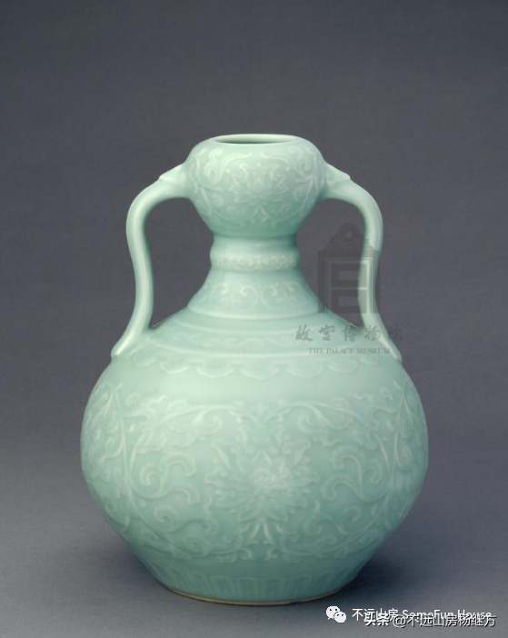 故宫博物院藏清雍正粉青釉凸花如意耳蒜头瓶