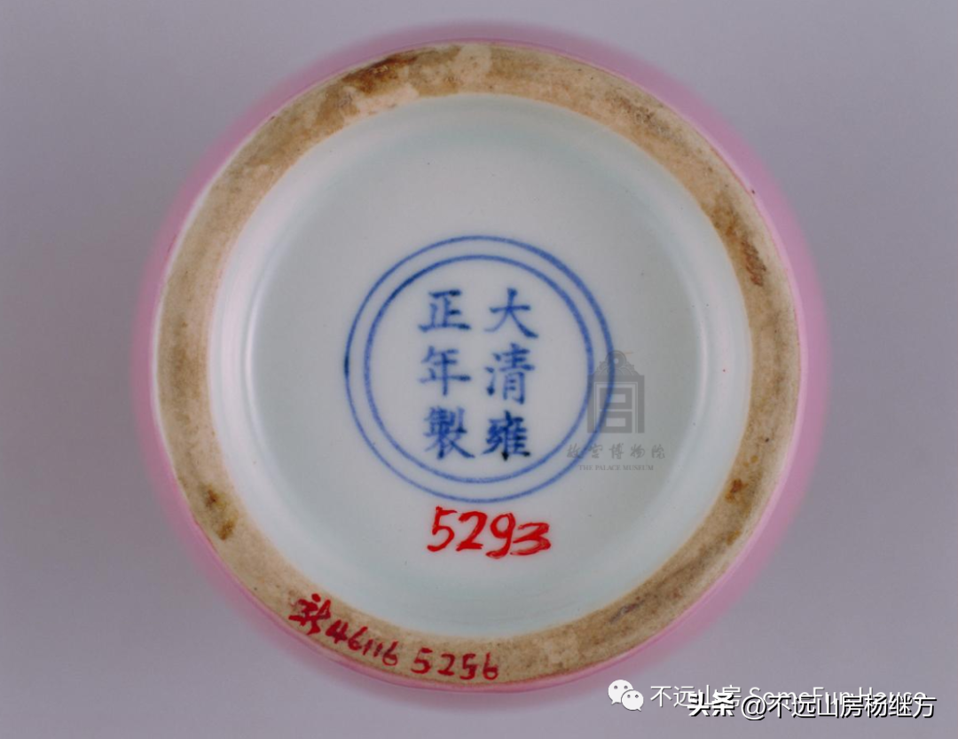 雍正红釉还有一种以金为着色剂的胭脂红釉,较浅的近乎于粉红,俗称胭脂水;较深的接近玫瑰红,俗称胭脂红。造型有小瓶、碗和小高足酒盅等,数量极少,极其名贵。