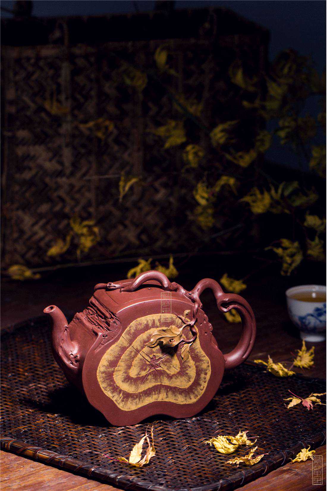 作品壶身如同一截遒劲的树桩,形象自然生动,颜色富于变化,壶盖、壶嘴、壶身、壶钮与壶的创作主旨相符,枯枝黄叶,无丝毫颓败之感,只觉明媚动人。
