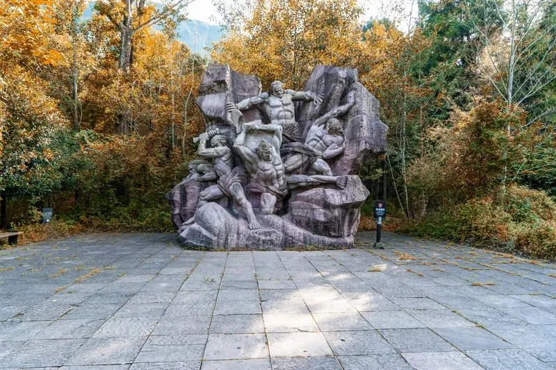 △“五丁坪”屹立着曾开辟蜀道的五位壮士