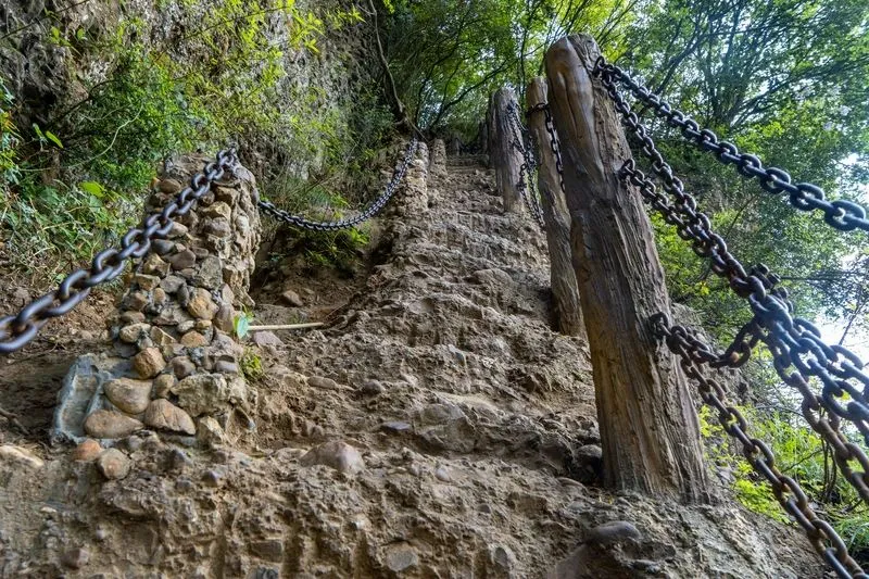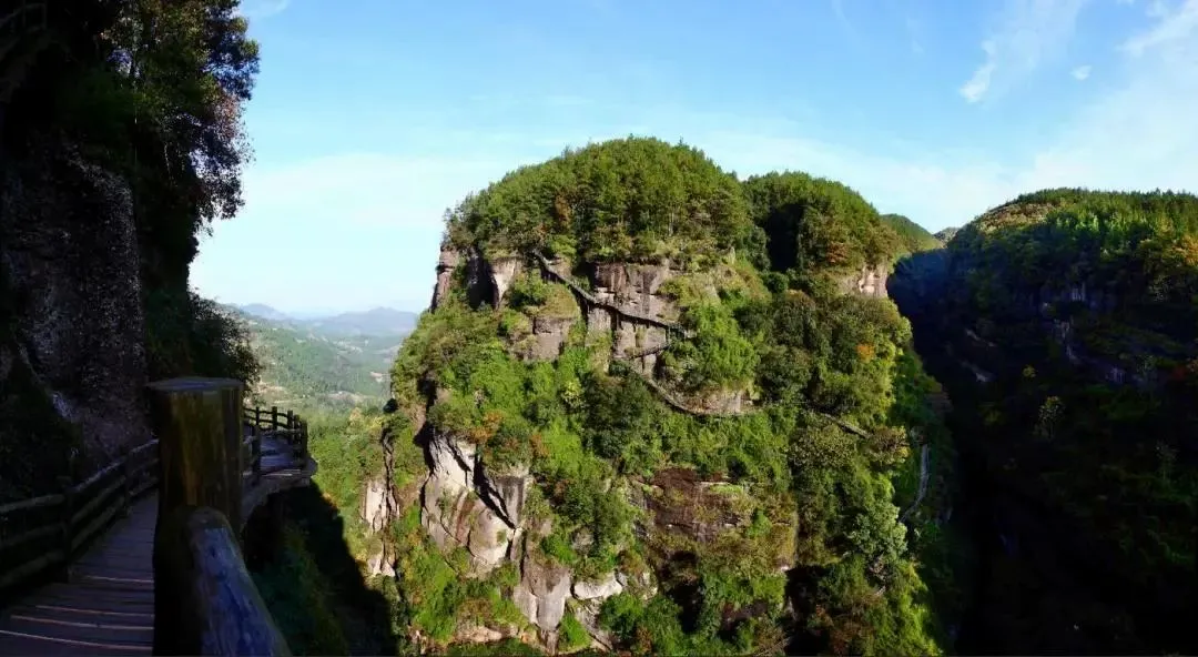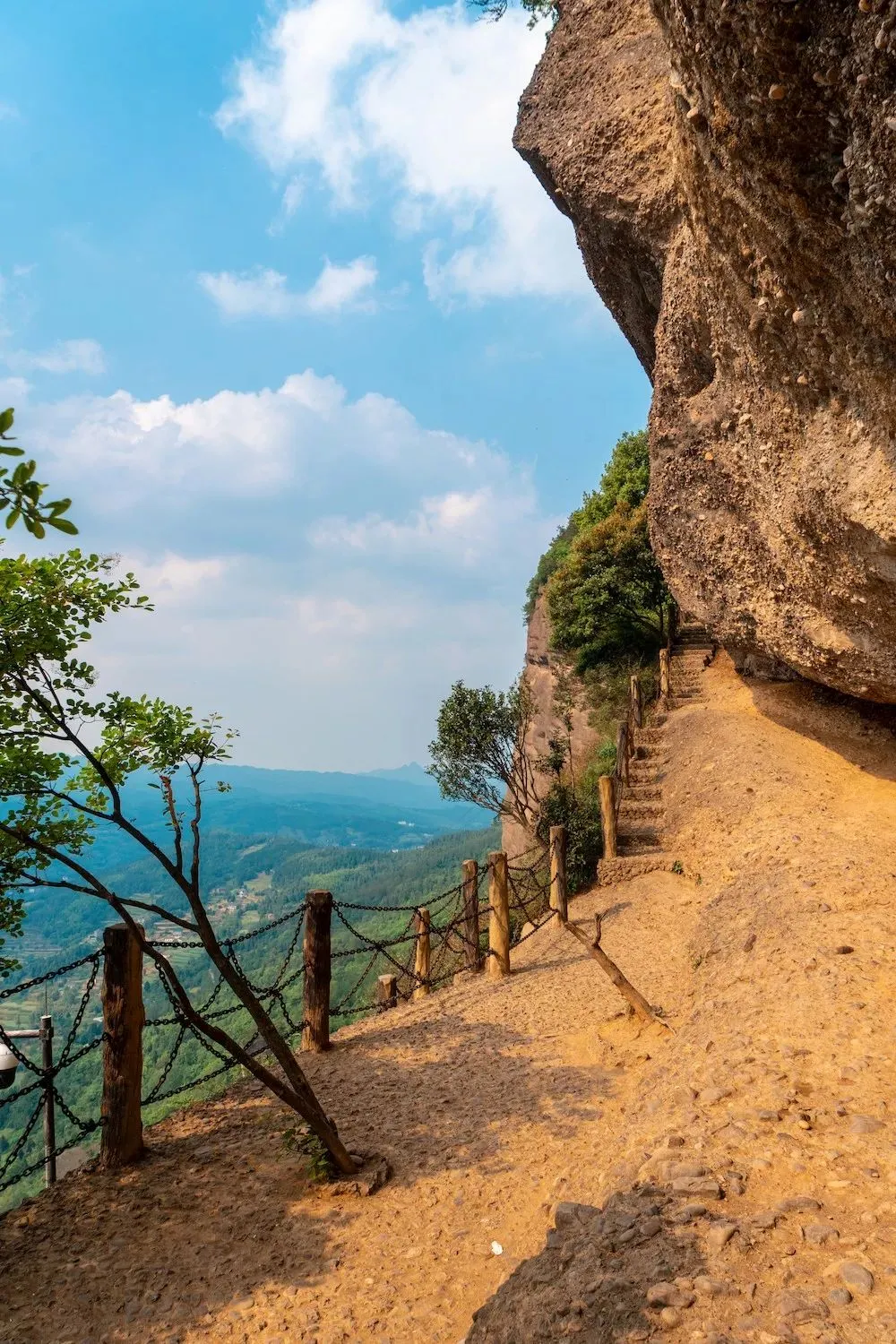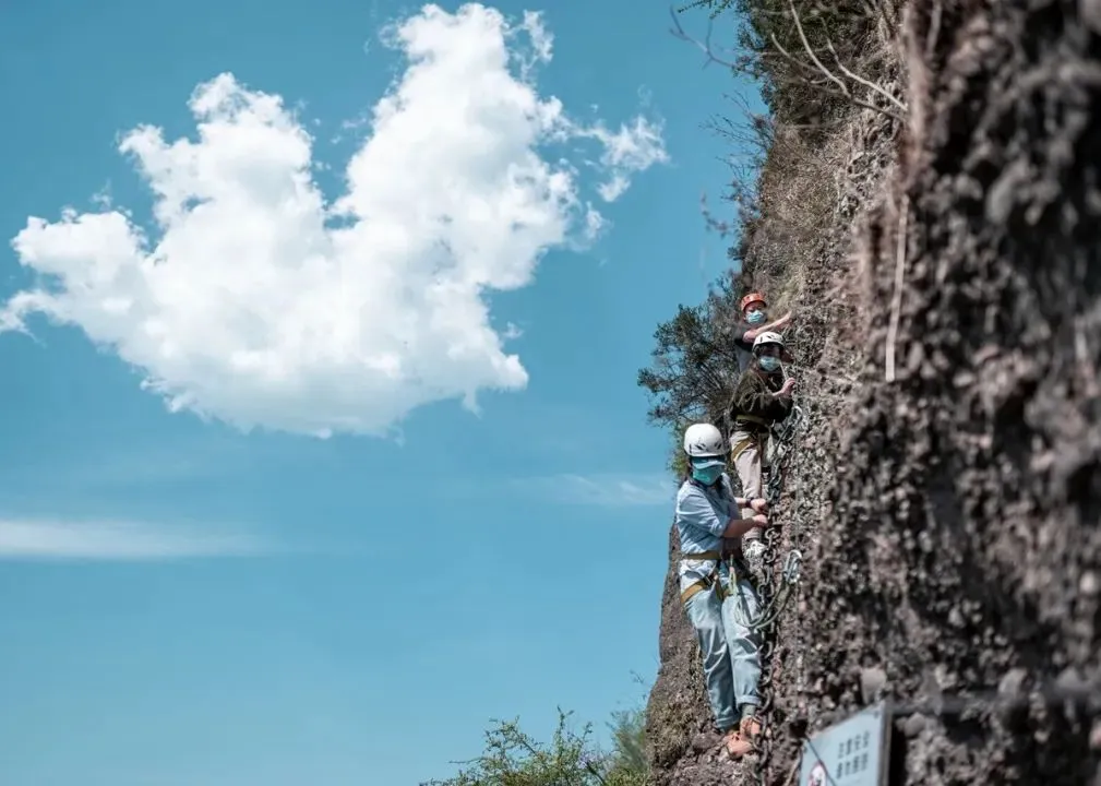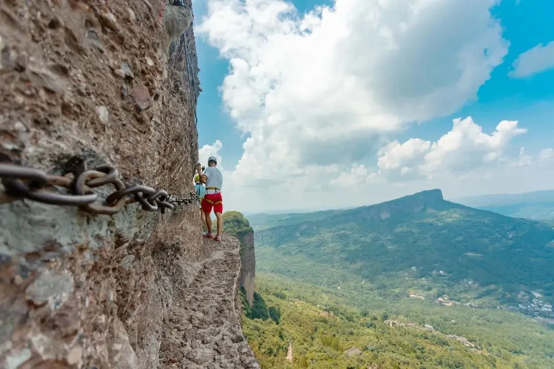 鸟道沿断壁开凿,呈“之”字行攀缘向上,挑战惊险,带给你极致释放。