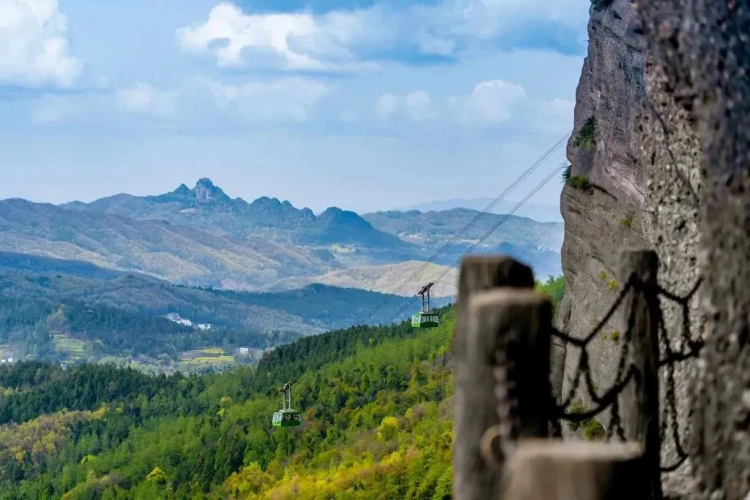 在缓缓升起的索道缆车中,可欣赏半山绝壁的鬼斧神工,也可俯瞰剑阁谷地和村庄,欣赏不同角度的剑门风光。