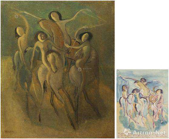 朱沅芷《马上舞旋》布面油画+水彩122×108cm;27×21cm1939年2013年香港佳士得春拍以1143万港元成交