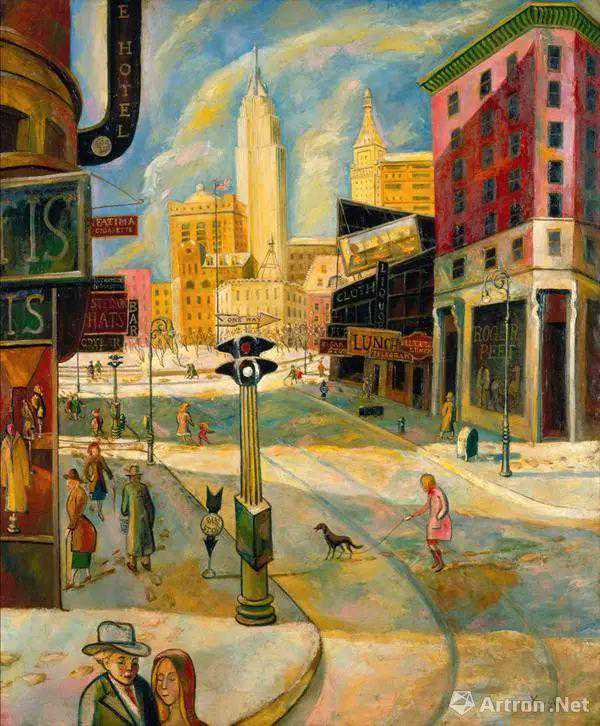 朱沅芷《欢乐节庆的百老汇》121x101cm布面油画1943-44年
