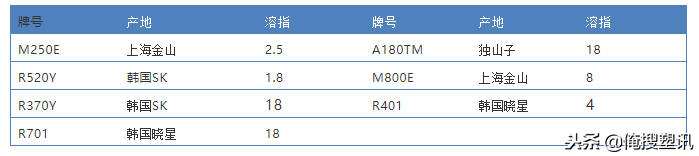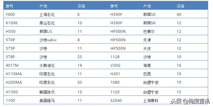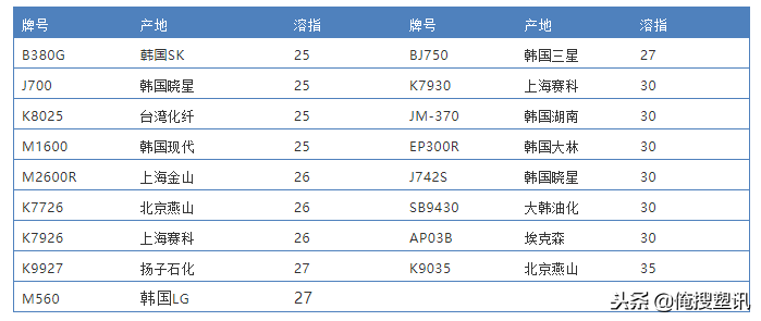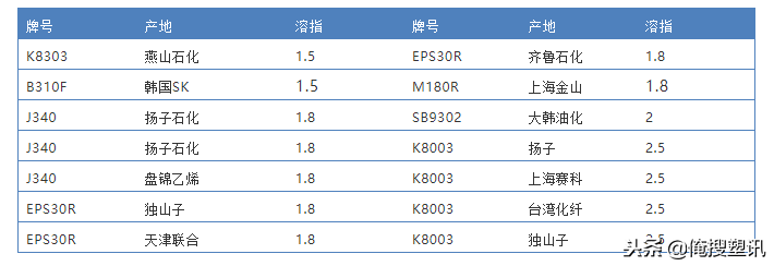 (熔融指数18以上,最通用、用量最大在25—30之间)